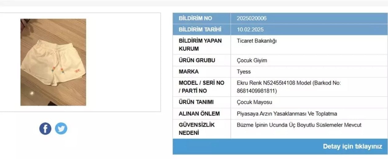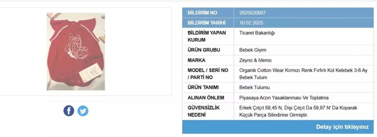 Ticaret Bakanlığı’nın 10 Şubat 2025 tarihli listesine göre, piyasaya arzın yasaklanmasına ve toplatılmasına karar verilen üç ürün belli oldu. Bu ürünlerden özellikle 2’si bebek ve çocuk giyim ürünleri olması nedeniyle ebeveynleri yakından ilgilendiriyor.