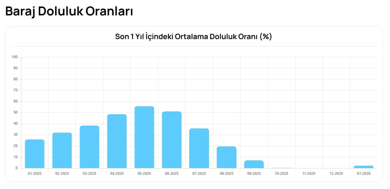 Bursa Su ve Kanalizasyon İdaresi (BUSKİ), 21 Ocak 2026 itibariyle kentteki barajların son 1 yıl içinde ortalama doluluk oranını kamuoyuyla paylaştı. Verilere göre, Ocak 2025’te yüzde 25,97 olan doluluk oranları ilkbahar aylarında yağışların etkisiyle yükseldiği, yaz sonu ve sonbaharda ise sert düşüşler yaşadığı görüldü.