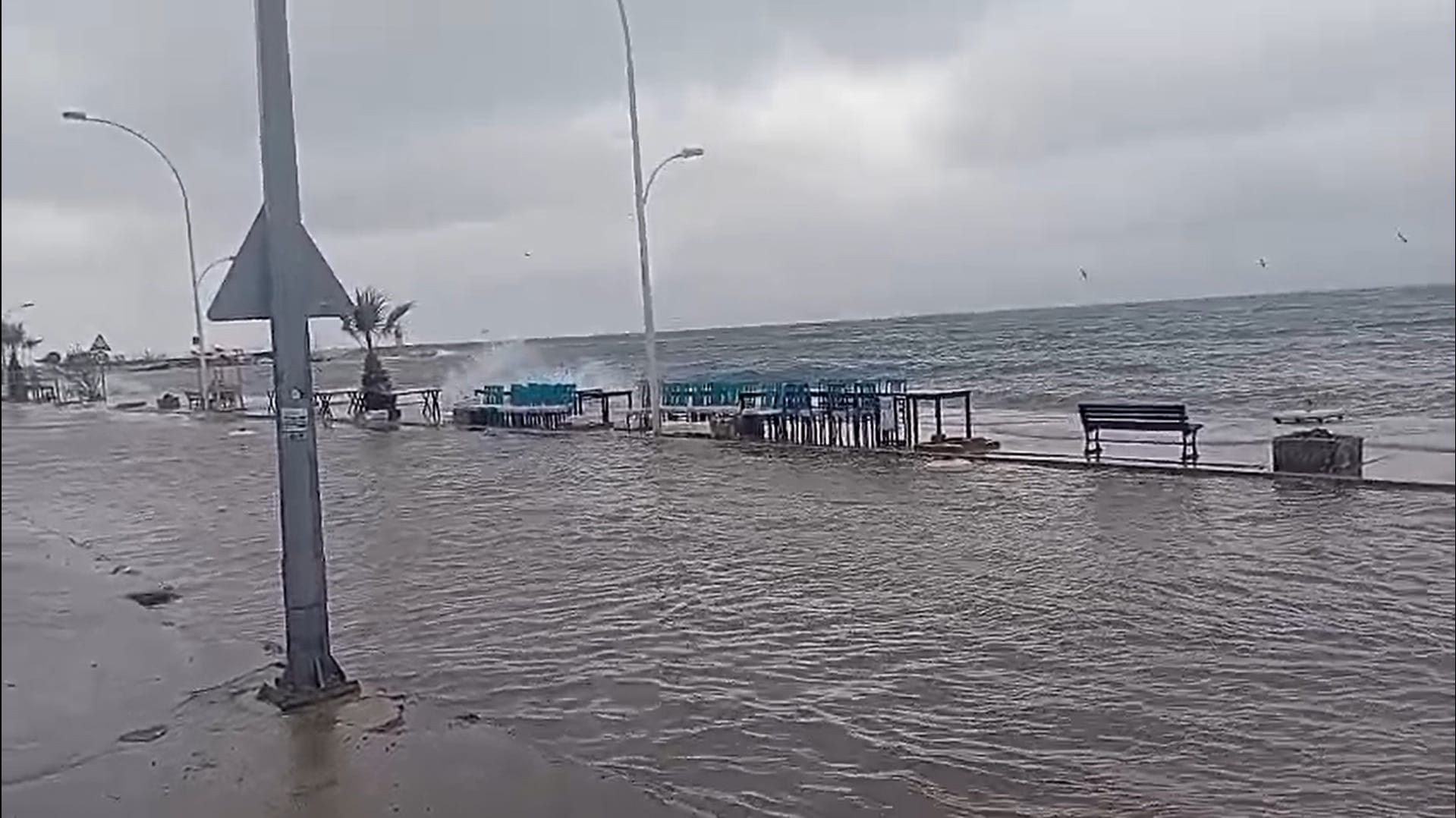 Görüntülerde fırtınanın etkisiyle yükselen dalgaların kıyı bandını tamamen kapladığı ve sahil yolunda oluşan manzara net bir şekilde görüldü. Kurşunlu’da fırtına ve yağışın etkileri sürerken, sahil şeridindeki olumsuzluklar devam ediyor.
