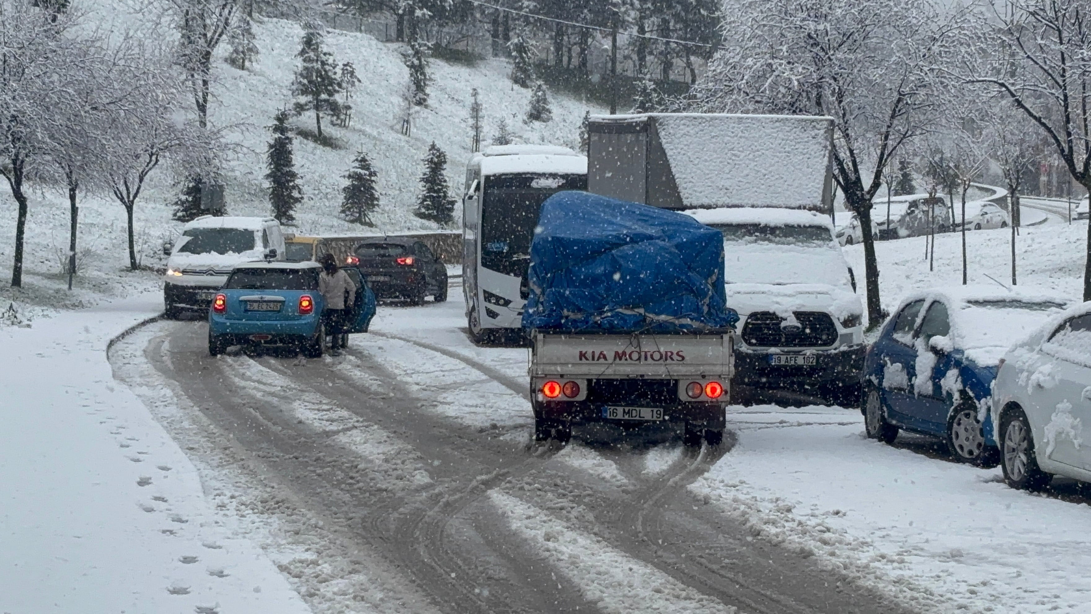 Bursa’da sabah saatlerinde başlayan yoğun kar yağışı, kısa süre içerisinde kenti beyazlar içinde bıraktı. Etkili olan kar yağışı nedeniyle ulaşımda aksamalar yaşanırken olumsuz hava koşullarına hazırlıksız yakalanan sürücüler, trafikte zor anlar yaşadı.