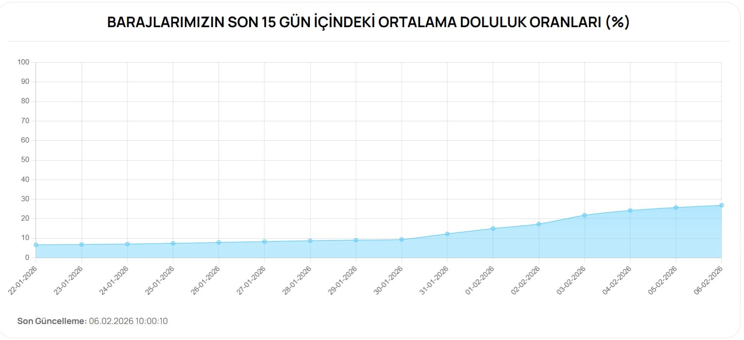 6 ŞUBAT 2026 ŞEHİRLERE GÖRE BARAJ DOLULUK ORANLARI