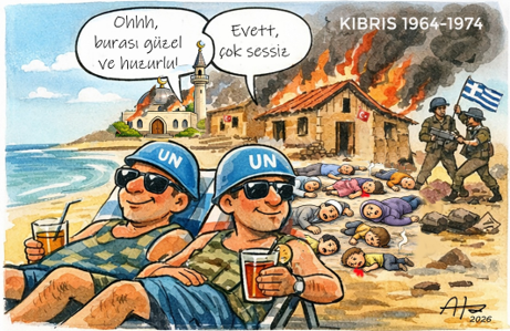 Tüm yaşanan katliamlara, felakete, soykırıma rağmen Kıbrıs adasına sözde barış getirmek için görevlendirilmiş Birleşmiş Milletler Barış Gücü askerlerinin her fırsatta plajlarda şezlong üzerinde güneşlenirken içkilerini yudumladıklarını, katliamlarla, işlenen insanlık suçlarıyla, yağmalarla hiç ilgilenmediklerini, Kıbrıs adasının hafızasında çok daha ağır, çok daha acı dolu sayfalar bulunduğunu unutmuş, nasıl olduysa.
