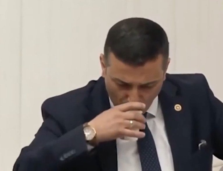 İYİ Partili Selçuk Türkoğlu, Meclis’te vekillere seslenirken kürsüde su içti. AKP sıralarından “Ramazan ayındayız, unuttun galiba!” şeklinde uyarılar geldi. Selçukoğlu şeker hastası olduğunu belirterek, “Fidyemi ödüyorum, hem de 180 liradan değil, yetmediği için daha fazlasını ödüyorum” diye karşılık verdi.