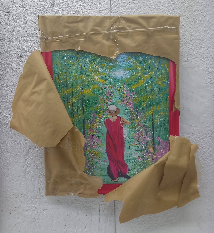 Atık karton kutu üzerine resim yapmak; günümüzde çevreye verilen zararların, kısacası doğa tahribatını ‘protesto’ niteliğindedir.